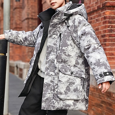 Bambino Da ragazzo Piume Giacca con cappuccio Capispalla Piumino per bambini Tinta unica Manica lunga Cerniera Cappotto Informale Cotone Adorabile Giornaliero Nero Verde militare Primavera Autunno