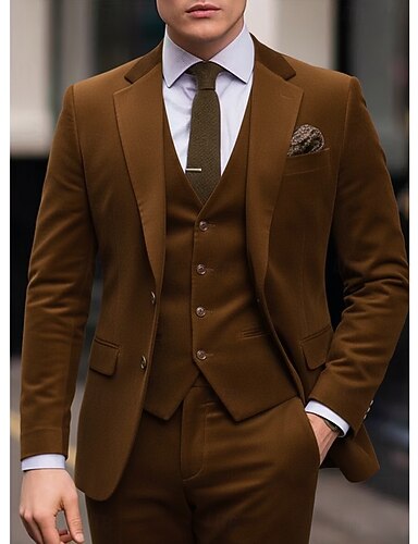 Uomo Completi in Tweed Casuale Affari Nero Marrone Autunno & Inverno Tuta Bavero classico Moda Quotidiano Tinta unita Vestibilità aderente 3 pezzi Monopetto Due Bottoni