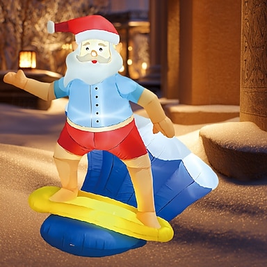 Cofanetto Gonfiabile di Babbo Natale 1,45M con Luci Gonfiabili Decorazione Interna ed Esterna con Luci LED per Vacanze all'Esterno Giardino