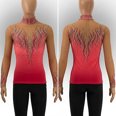 Maglia da pattinaggio artistico Per uomo Pattinaggio sul ghiaccio Top Rosso Patchwork Alta elasticità Allenamento Competizione Vestiti da pattinaggio sul ghiaccio Classico Cristallo / Strass Manica