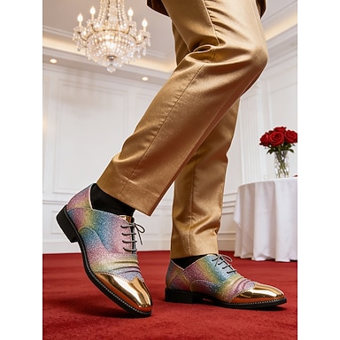scarpe oxford lucide arcobaleno in similpelle da uomo, scarpe da sposa alla moda con design moderno per sposi eleganti