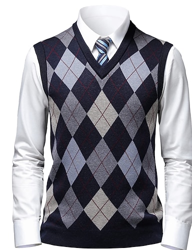 Per uomo Felpa Gilet maglione Maglioni eleganti da uomo Maglione A coste Maglia Lavorato a maglia A quadri A V Moda Informale Da tutti i giorni Da mare Abbigliamento Primavera & Autunno Cammello