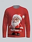 Per uomo Maglietta Camicia di Natale Camicia a Maniche Lunghe Manica Lunga Girocollo Primavera Autunno Babbo Natale Moda Designer Essenziale Stampa Natale Vacanza Streetwear Blu Nero Rosso Maglietta