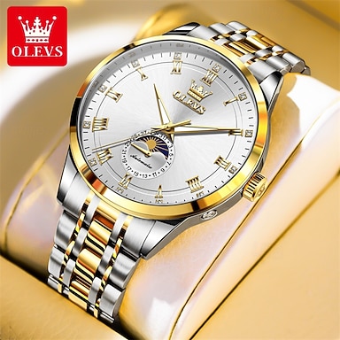 Il nuovo orologio da business Olevs da uomo presenta un calendario luminoso della fase lunare piccole lancette a tre orologio digitale multifunzionale con grande quadrante al quarzo che è elegante