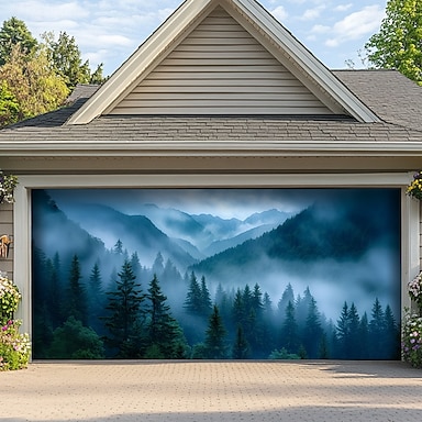 Decorazioni per Porta del Garage Paesaggio Foresta Nebbiosa Copertura Porta del Garage Banner all'Aperto Grande Sfondo per Decorazioni di Casa per Eventi Festivi
