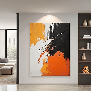 dipinto a olio astratto minimalista di grandi dimensioni fatto a mano su tela, dipinto arancione, tela acrilica nera, arte contemporanea, dipinto bianco, arredamento per ufficio