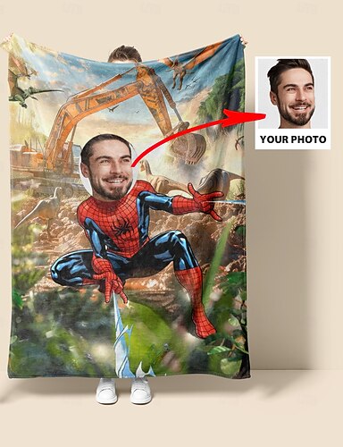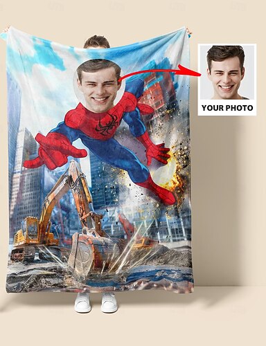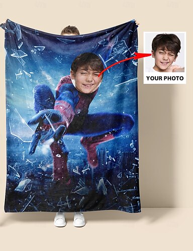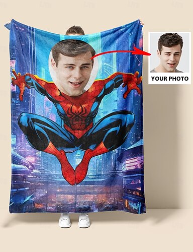 Coperta da supereroe personalizzata coperta con ragno e foto coperta personalizzata per ragazzi regalo di San Valentino regalo di compleanno per gli amanti dei supereroi