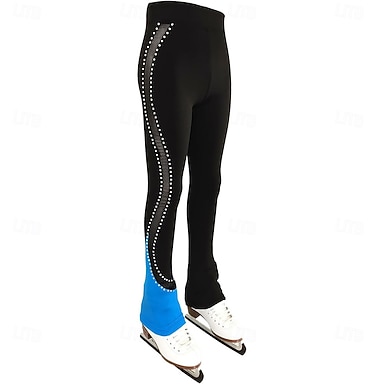 pantaloni da pattinaggio artistico da donna e da ragazza, pantaloni da pattinaggio sul ghiaccio, neri, elastici, abbigliamento da pattinaggio per gare di allenamento, termici, caldi, con