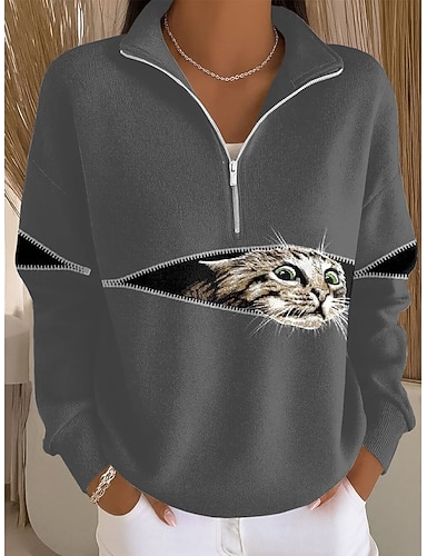 Per donna Felpa Pullover Cerniera Grafico Animale Casual Manica Lunga Mezza zip Top Regolari Casuale Abbigliamento Quotidiano Ferie Nero Bianco Kaki Beige Primavera Autunno