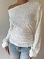 Per donna Maglietta Top con cuciture in pizzo Pizzo Semplice Casual Manica Lunga Collo asimmetrico Top Regolari Quotidiano Uscire Weekend Bianco Primavera