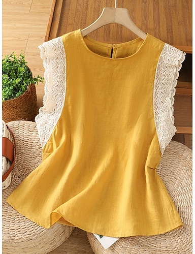 Per donna Blusa Camicia di cotone Maglietta senza maniche Pizzo Semplice Elegante Classico Moderno Senza Maniche Girocollo Top Regolari Quotidiano Ferie Uscire Nero Giallo Estate Primavera