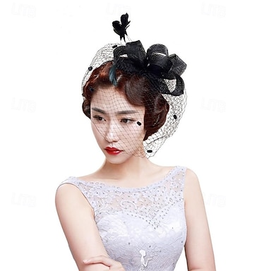 Diademi Acconciatura Tulle Matrimonio Compleanno Corsa di Cavalli Elegante Vintage Con Piuma Tulle Copricapo Copricapo