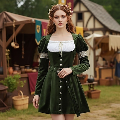 Elegante Medievale Rinascimento Abito da cocktail Vichingo Elfico Tinta unica Costume Per donna Celtico Costumi da pirata Fantasia Halloween Carnevale Mascherata Carnevale Halloween Mascherata Adulti