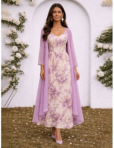 Per donna Insieme del vestito Abito a trapezio Elegante Vacanza Floreale Grafico Stratificato Stampato Abito maxi Manica Lunga Scollo a V Quotidiano Vacanza Blu Rosa Viola Estate Primavera