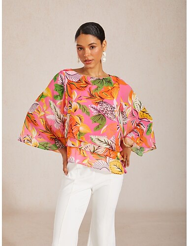 Top in chiffon ampio con motivo floreale tropicale per le vacanze