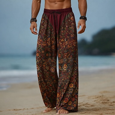 Per uomo Paisley Stampa Floreale Etnico Pantaloni Pantaloni Larghi Pantaloni casual Misura del girovita medio Stile Boho Vintage Retrò Casa All'aperto Vacanza Coulisse elastica in vita Pantaloni tipo