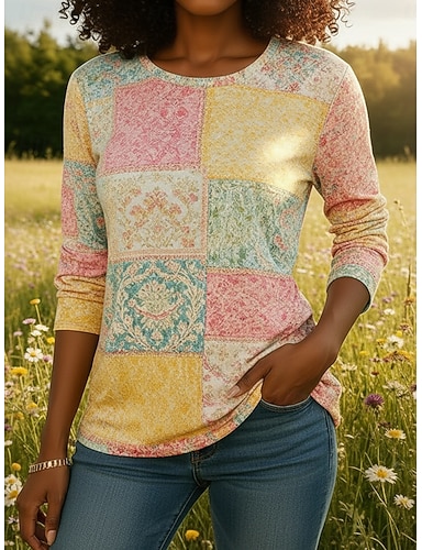 Per donna Maglietta Stampato Floreale Grafico Paisley Vintage Moda Elegante Manica Lunga Girocollo Top Regolari Quotidiano Weekend Blu Blu turchese Viola Arancione Marrone Primavera Autunno Inverno