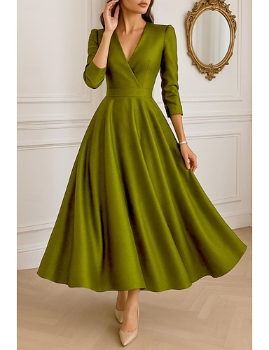 Linea ad A Lunghezza alla caviglia Abiti da Cocktail Elegante Vintage Manica 3/4 Scollo a V Formale Tasca Taffetà con Pieghe Arricciato Tasca