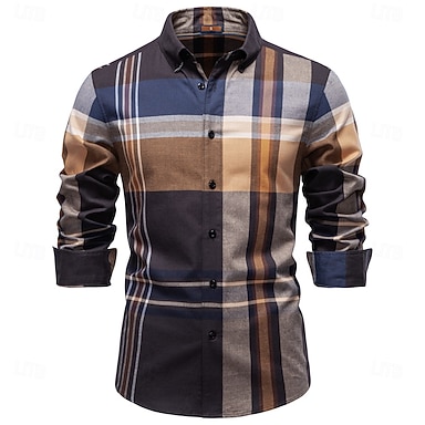 Per uomo Camicia Marrone Manica Lunga Plaid Colletto a Camicia Scuola Formale Bottoni Abbigliamento Vintage Quotidiano In lattice
