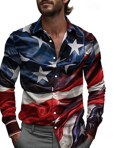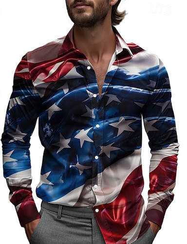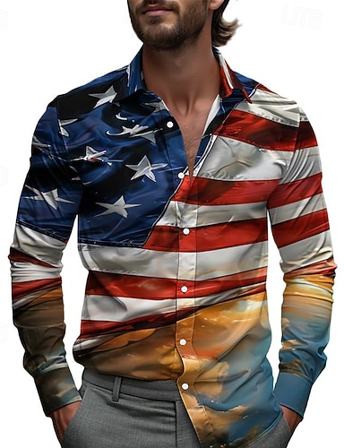 Giorno dell'Indipendenza Americana Per uomo Grafico 4 luglio, 250° anniversario degli Stati Uniti Bandiera Americana Camicia Camicia button-down Camicie hawaiane Manica Lunga Vintage Casual Spiaggia