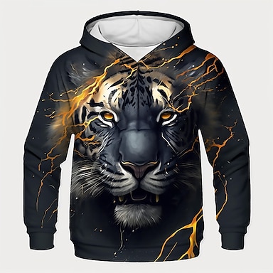 Da ragazzo 3D Tigre Felpa con cappuccio Pullover Manica lunga Stampa 3D Primavera Autunno Di tendenza Streetwear Fantastico Bambino 3-12 anni Con cappuccio Esterno Informale Giornaliero Standard