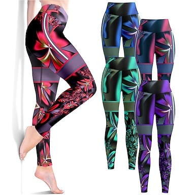 Per donna Pantaloni da yoga Sollevamento glutei Controllo addominale Vita Alta Allenamento in Palestra Corsa Fitness Leggings corti Floreale Rosa Rosso Blu Autunno Gli sport Abbigliamento sportivo