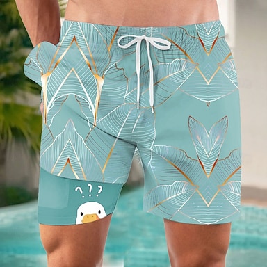 Per uomo Cartoni animati Anatra Gergo divertente Pantaloncini foderati Pantaloncini da bagno 2 in 1 Pantaloncini da mare Misura del girovita medio Hawaiano Ferie Tasche Laterali Con Fodera a