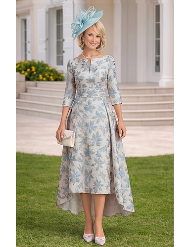 Linea ad A Abito alto-basso Lunghezza Tè Vestito da Festa Abito da Cocktail Abito da invitata a nozze Abito da cerimonia per signora Manica 3/4 Scollo a V Scollo a Barca Elegante Vintage Formale