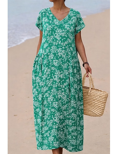 Per donna Abito maxi Abito a trapezio Casual Quotidiano Spiaggia Vestibilità comoda Geometrico Manica Corta Scollo a V Blu Marrone Scuro Verde chiaro Rosso Estate Primavera