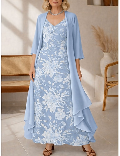 Per donna Abito maxi Set di vestiti Abito a trapezio Vacanza Boho Spiaggia Vestibilità regolare Floreale Grafico Manica 3/4 Scollo a V Blu Rosa Verde Beige Estate Primavera Autunno Inverno