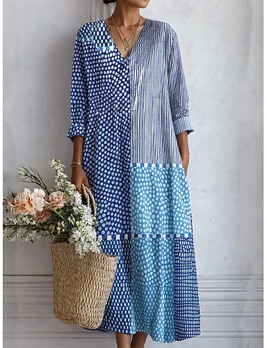 Per donna Abito Lungo Maxi Abito Abito Boho Abito a Tubino Vestito Estivo Abito da Spiaggia Bohemien Vacanza Etnico Spiaggia Ferie Data Vestibilità comoda Grafico Astratto Manica 3/4 Scollo a V Blu