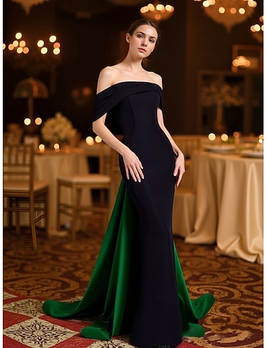 Sirena Tromba Strascico a Terra Abito da Sera Elegante Stile Celebrità Senza Maniche Senza Spalle Festa serale Matrimonio Raso con Sopragonna
