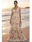 Linea ad A Abito Lunghezza al pavimento Vestito da Festa Abito da Cocktail Abito da cerimonia per signora Mezza Manica Scollo Illusione Elegante Vintage Formale Ospite di nozze Festa di fidanzamento