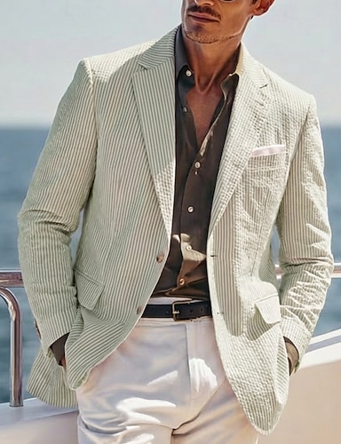 Per uomo Giacca blazer Collare di chiusura Moda Leggero Casual A righe Blazer Blazer in seersucker Rosa Azzurro cielo Verde salvia Vestibilità su misura Monopetto Due Bottoni