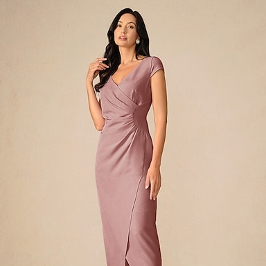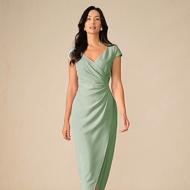 Abito a colonna lunghezza alla caviglia abito da festa abito da cocktail abito da ospite di nozze abito della madre della sposa mezza manica scollo a V elegante vintage scintilla e luccichio con