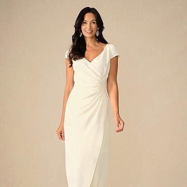 Linea ad A Lunghezza alla caviglia Abito Derby Abito da cerimonia per signora Manica 3/4 Scollo a V Bavero Elegante Derby del Kentucky Crepe Elasticizzato con Fiocco/Fiocchi