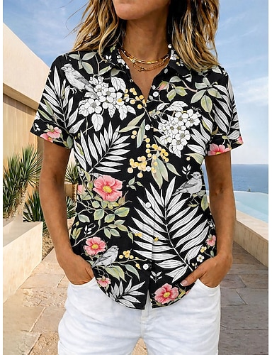 Per donna Camicia Floreale Grafico A righe Vintage Tropicale Elegante Manica Corta Colletto a Camicia Top Regolari Quotidiano Blu Nero Rosa Arancione Estate Primavera
