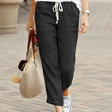 Per donna Set da due pezzi Set di Pantaloni Finto cotone e lino Manica Lunga Colletto a Camicia Semplice Moda Streetwear Abbigliamento quotidiano Data Nero Bianco Giallo Estate Vestibilità regolare