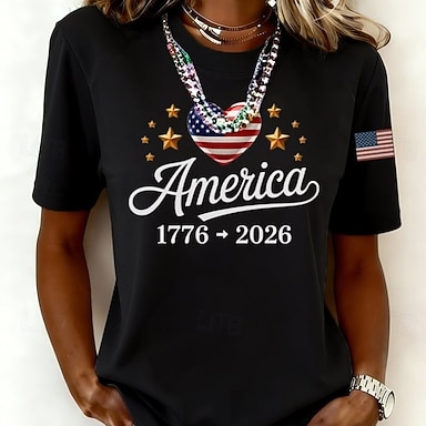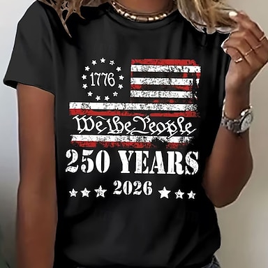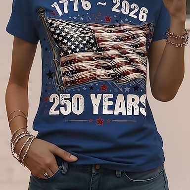 Giorno dell'Indipendenza Anniversary Americano Maglietta Patriottica da Donna Stampa Grafica Bandiera Lettera Elegante Classica Casual Manica Corta Collo Tondo Top Lunghi Giornalieri Blu Nero Bianco