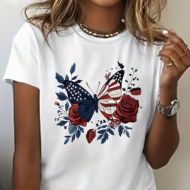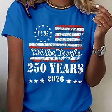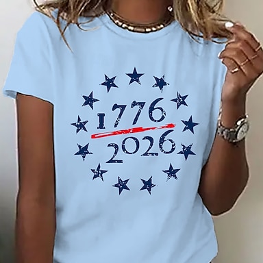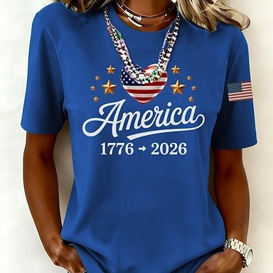 Giorno dell'Indipendenza Americana Per donna Maglietta Stampato Grafico Lettera Bandiera Americana Elegante Classico Casual Manica Corta Girocollo Top Regolari Quotidiano Bianco Verde militare Blu