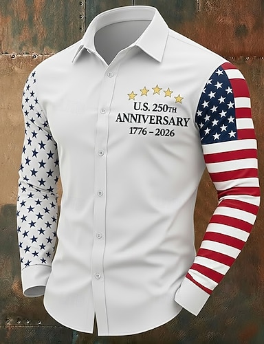 Maglietta patriottica degli uomini dell'America 250° anniversario Bandiera degli Stati Uniti Giorno dell'Indipendenza Camicia a collo alto Camicia casual a maniche lunghe Camicia da vestire per le