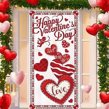 San Valentino Poster Copertura della porta Banner per esterni Amore Cuori Carino Romantico Moderno Da serata Dormitorio Sfondi di ripresa Porta d'ingresso Decorazione per proposta di matrimonio