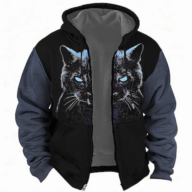 Natale Per uomo Gatto Felpa con Cappuccio Felpe con cappuccio Felpa Moda Quotidiano Etnico Manica Lunga Con Cappuccio Ferie Viaggio Giallo Blu Viola Verde Coulisse Cerniera Tasca Autunno Inverno