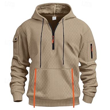 Per uomo Felpa con cappuccio Felpa con cappuccio e zip corta Felpa con cappuccio tattica Nero Bianco Verde militare Cachi Grigio Con Cappuccio Semplice Cerniera Testurizzato Sport & Outdoor Casuale