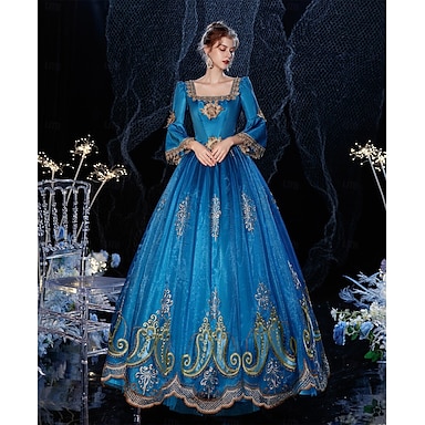 Vintage Rococò Rinascimento Maxi Vestito Normale A sbuffo Cenerentola Principessa Collo quadrato Costume Tutti Halloween Carnevale Mascherata Performance Feste Halloween Adulti Tutte le stagioni