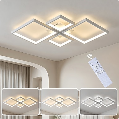 Plafoniera LED moderna dimmerabile con telecomando, 4 teste, in alluminio, ideale per interni come soggiorno, camera da letto, sala da pranzo, ufficio e cucina, 110-240 V.