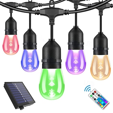 Luci solari da esterno per patio, impermeabili, dimmerabili con telecomando, catena luminosa a LED RGB per caffè, con 10 lampadine infrangibili per feste in stile bistrot.