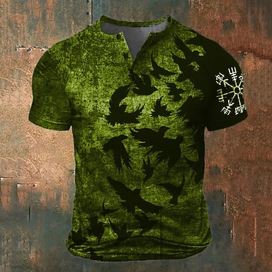Per uomo Grafico Animale Vichingo Maglietta Maglia Henley Manica Corta Stampa 3D Moda Classico Retrò Vintage Sport all'Aperto Ferie Uscire Primavera & Estate Blu Marrone Verde Grigio Henley Maglietta