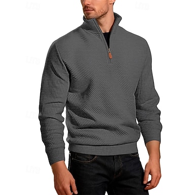 Per uomo Maglia Felpa con zip corta Nero Vino Verde militare Blu Marrone Mezza zip Semplice Jacquard A coste Testurizzato Trama a maglia Sport & Outdoor Quotidiano Ferie Poliestere Streetwear