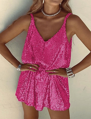 Per donna Mini Abito Abito con Paillettes Moda Moderno Quotidiano Vacanza Uscire Vestibilità regolare Semplice Senza Maniche Scollo a V Argento Champagne Rosa Estate Primavera Autunno Inverno